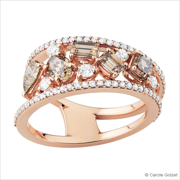 Bague « Champagne » Or rose, diamants et diamants champagne